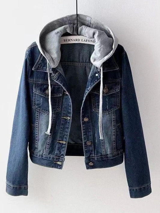 Full Size Button Up Drawstring Hooded Denim Jacket Plus Size