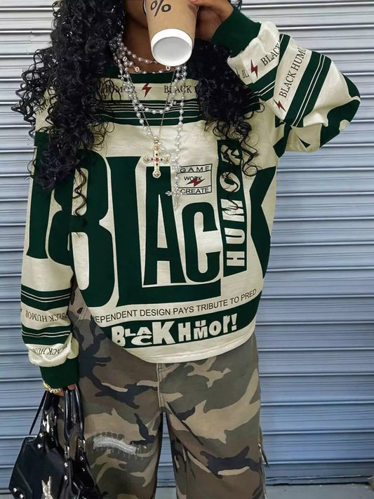 Printed Drop Shoulder Long Sleeve T-Shirt