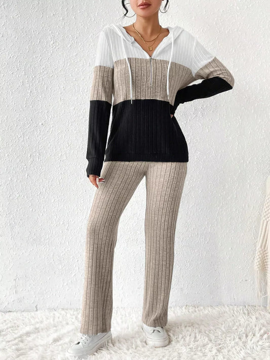 Contrast Trim Round Neck Top and Pants Sweater Set